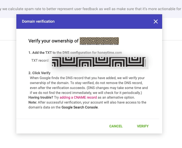 或Google會要求你新增TXT record 在你的網域上,請進行新增,以完成驗證。