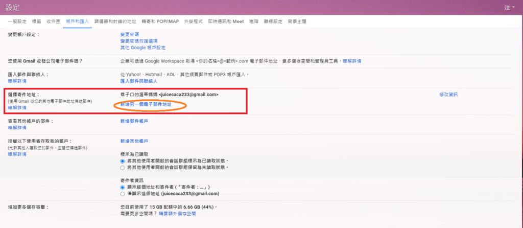 Step 2 . 首先設定Gmail 代發功能