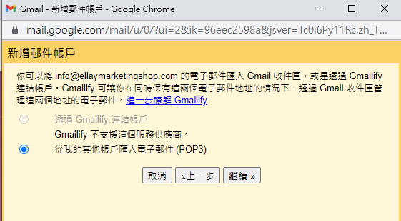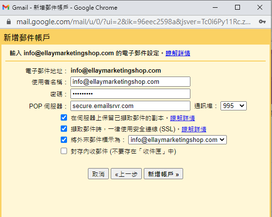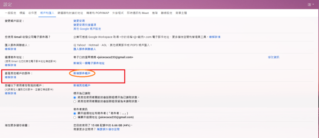 Step 3. 再來設定Gmail 代收功能