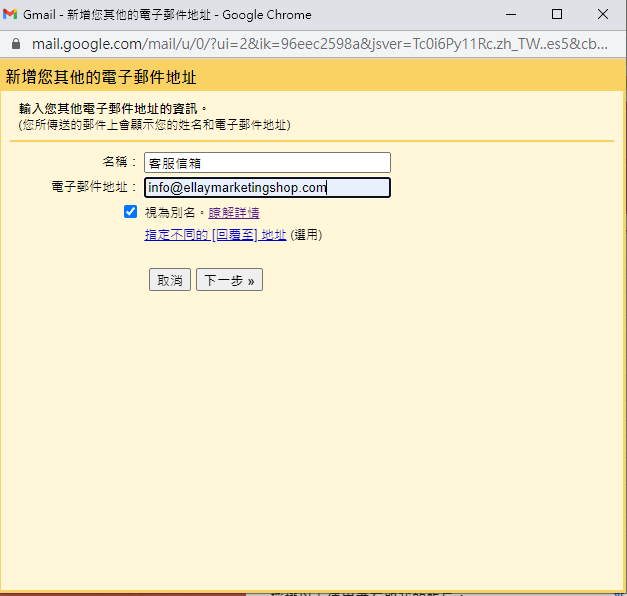 視為別名要記得打勾。之後,進入下一步。