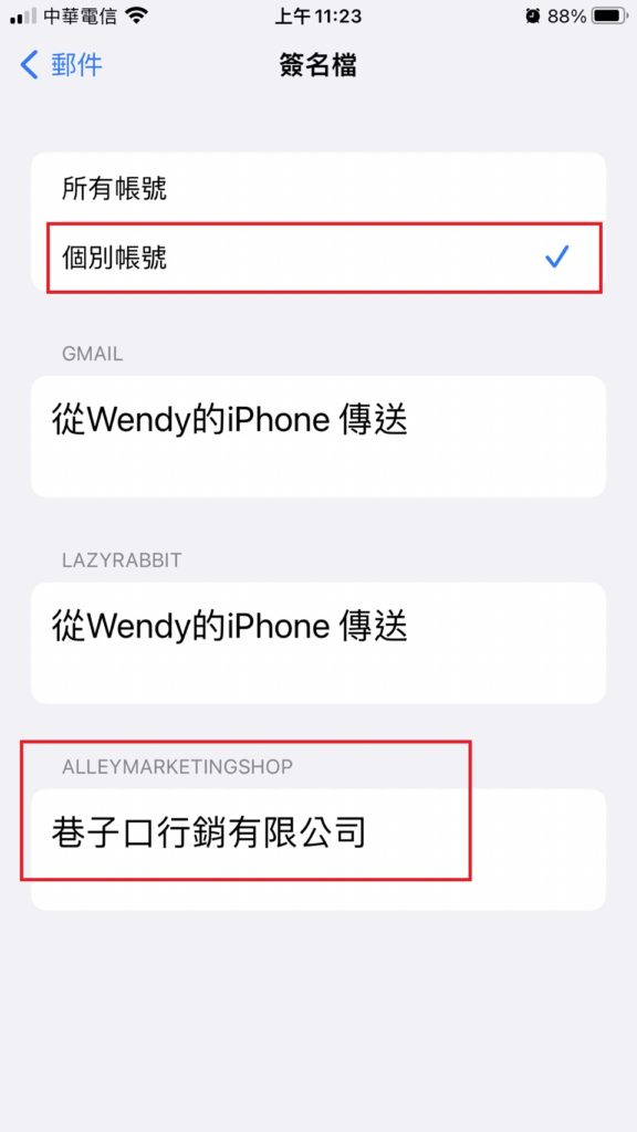 另外提醒一點,因為iphone 信件的簽名檔原始設定是「從XXX的iphone 傳送」,故若你之後常用手機來做寄信的動作,記得設定專屬簽名檔,以免讓客戶覺得疑惑喔!(如下所示)