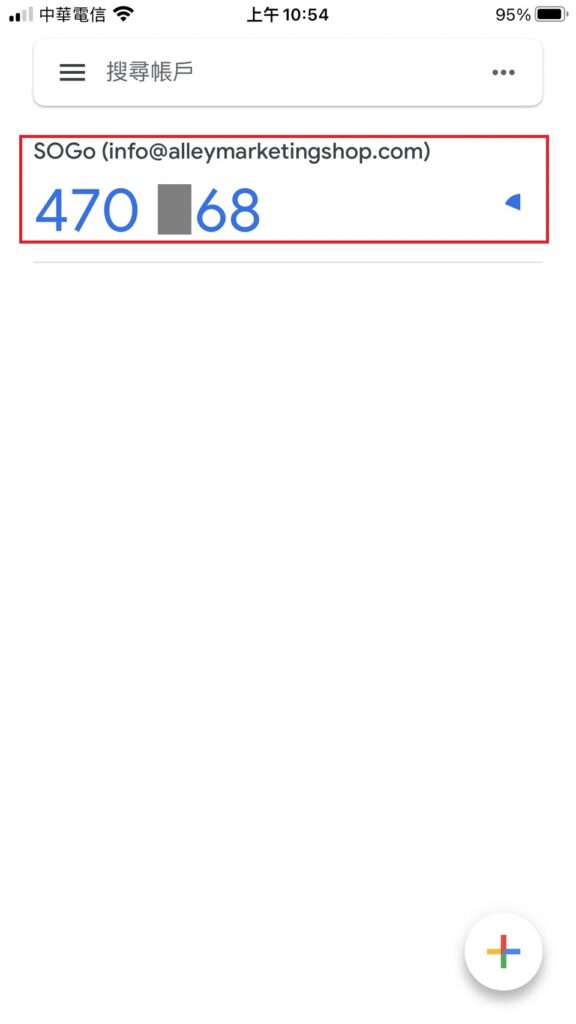 3. 成功加入email ,此時APP會有一個六碼的浮動密碼 (約30秒會換一個新的)