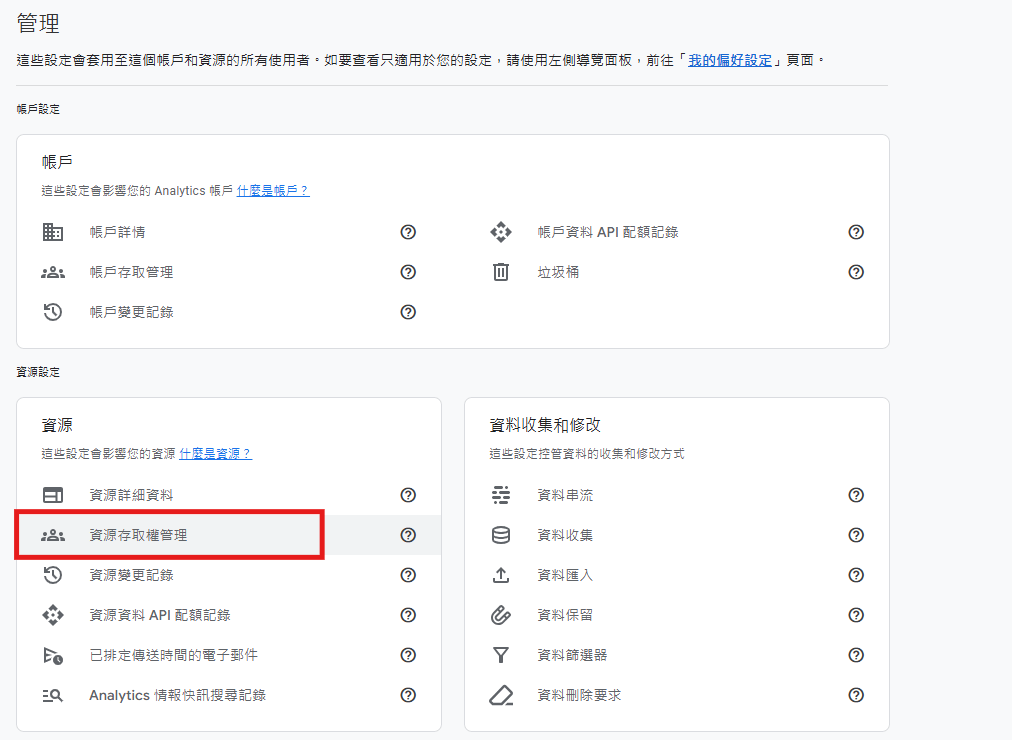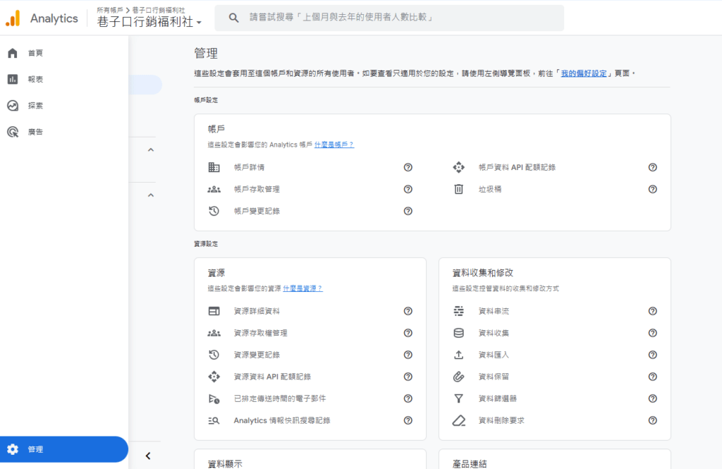 STEP1 ,首先,先進入自己的GA帳戶中,找到左下角的 管理