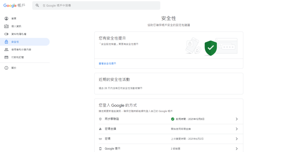 STEP 1 . 確認登入欲使用的gmail帳號 ,接著點選進入安全性設定網頁