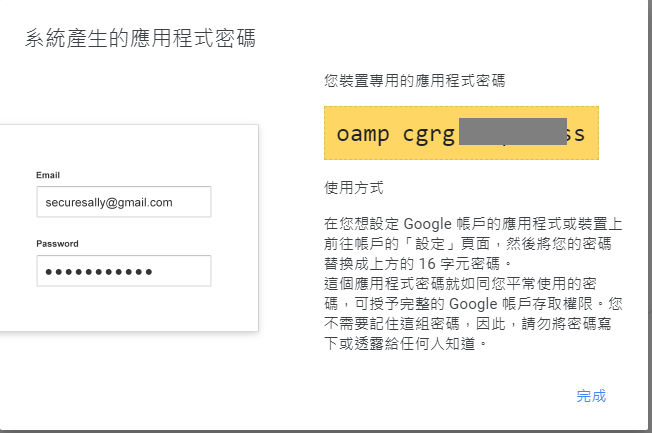 但首先要先取得gmail的應用程式密碼,才能串接在網站上呦!